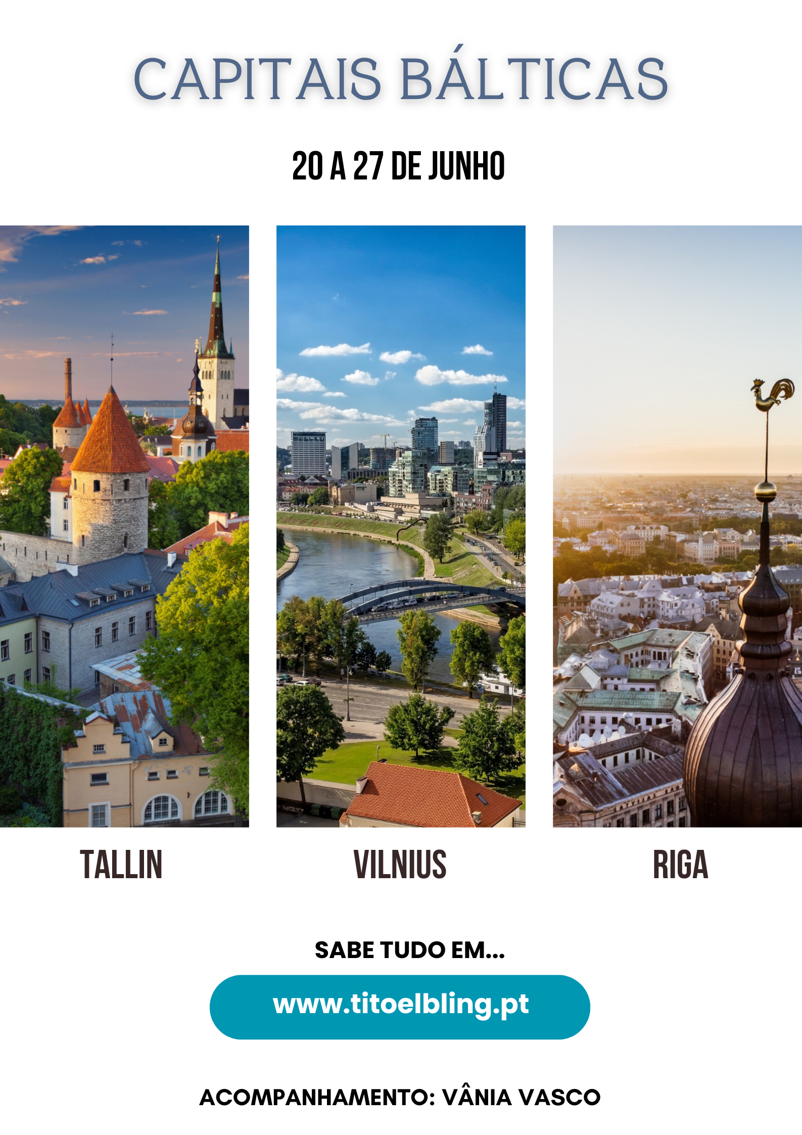 De 20 a 27 de junho, viajas com a Vânia pelas Capitais Bálticas, numa semana que te leva do charme medieval de Tallinn à elegância de Riga e à espiritualidade tranquila de Vilnius. Vais descobrir castelos, cidades antigas e histórias que se sentem ao ritmo do Norte, tudo com a leveza e o cuidado que a Vânia coloca em cada viagem.