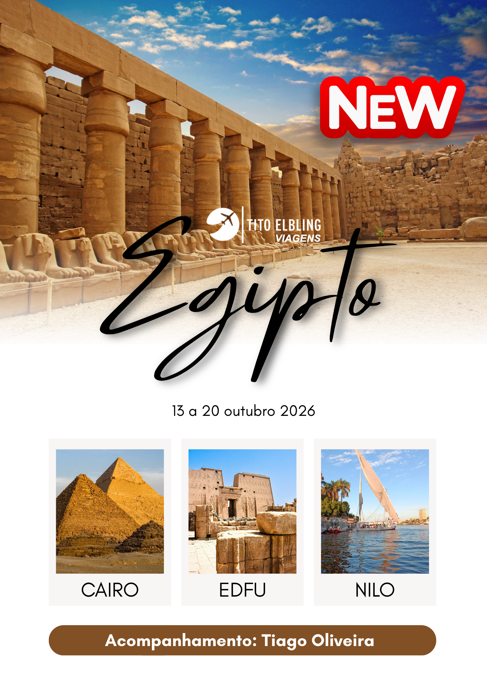 📍 Roteiro: Cairo, Pirâmides de Gizé, Esfinge, Templo de Quéfren, Grande Museu Egípcio, Khan El Khalili, Assuão, aldeia núbia de Gharb Soheil, Kom Ombo, Edfu, Esna, Luxor, Vale dos Reis, Templo de Hatchepsut, Colossos de Mémnon