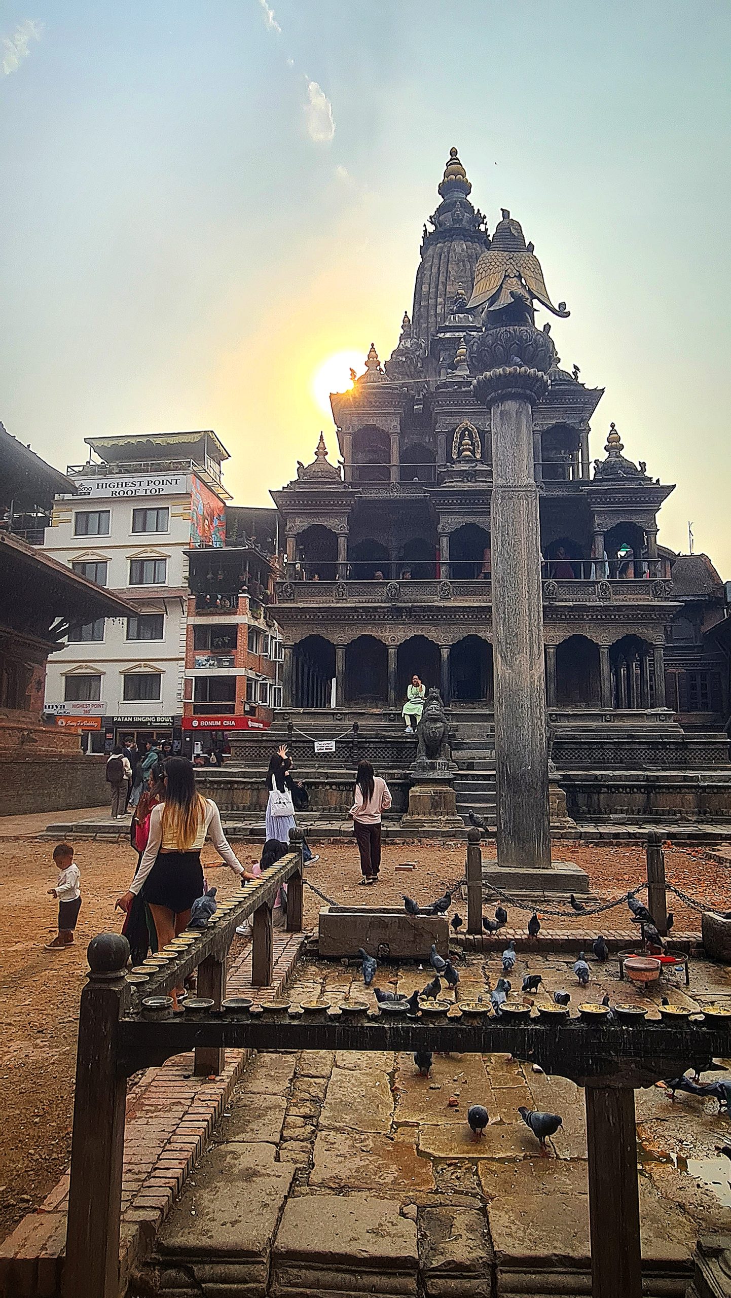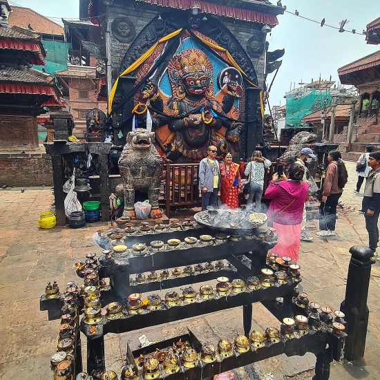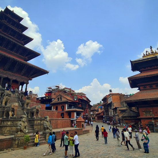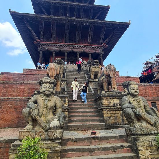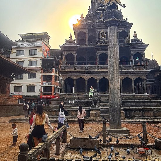 Opcional: De manhã bem cedo, transporte para o aeroporto para embarcar num voo panorâmico sobre as montanhas do Nepal. O avião parte de Kathmandu, voa ao longo do Himalaia oferecendo vistas das montanhas cobertas de neve, antes de regressar (duração entre 50 minutos a 1 hora). Durante o voo, terá a oportunidade de ver 20 dos picos mais altos a este do Nepal, começando pelo Langtang Lirung, o pico mais próximo de Kathmandu, passando pelo Monte Everest e pelo Chamlang. Este voo de montanha não só permite desfrutar de vistas fantásticas, como também ajuda a compreender a geografia do Nepal. O voo começa às 6:00 da manhã, pelo que é necessário chegar ao aeroporto com bastante antecedência. Informaremos, localmente, o horário exato do transporte para o aeroporto O pequeno-almoço será no hotel. Check-out. Saída para Nagarkot, passando pela cidade de Bhadgaon / Bhaktapur. Bhaktapur é uma antiga cidade Newar localizada no canto leste do Vale de Kathmandu. A praça principal, Durbar Square, abriga o Palácio das 55 janelas, construído pelo rei Bhupatindra Malla, que foi residência da realeza até 1769. Atualmente é uma Galeria Nacional. Nas proximidades encontra-se o Portão Dourado, que dá acesso ao Mulchok Court, onde se encontra o Templo Taleju. Este templo, como outros nas principais cidades do Vale de Kathmandu, é dedicado à deusa Taleju Bhawani e inclui santuários tanto para Taleju Bhawani quanto para a Kumari (não-hindus não podem entrar no santuário e a Deusa Viva não pode ser fotografada). Durante o tour, faremos também uma caminhada patrimonial pelos becos medievais da cidade e visitaremos uma família local, para conhecer melhor o estilo de vida dos habitantes. Prosseguiremos viagem até Nagarkot. À chegada, check-in no hotel. Jantar e alojamento