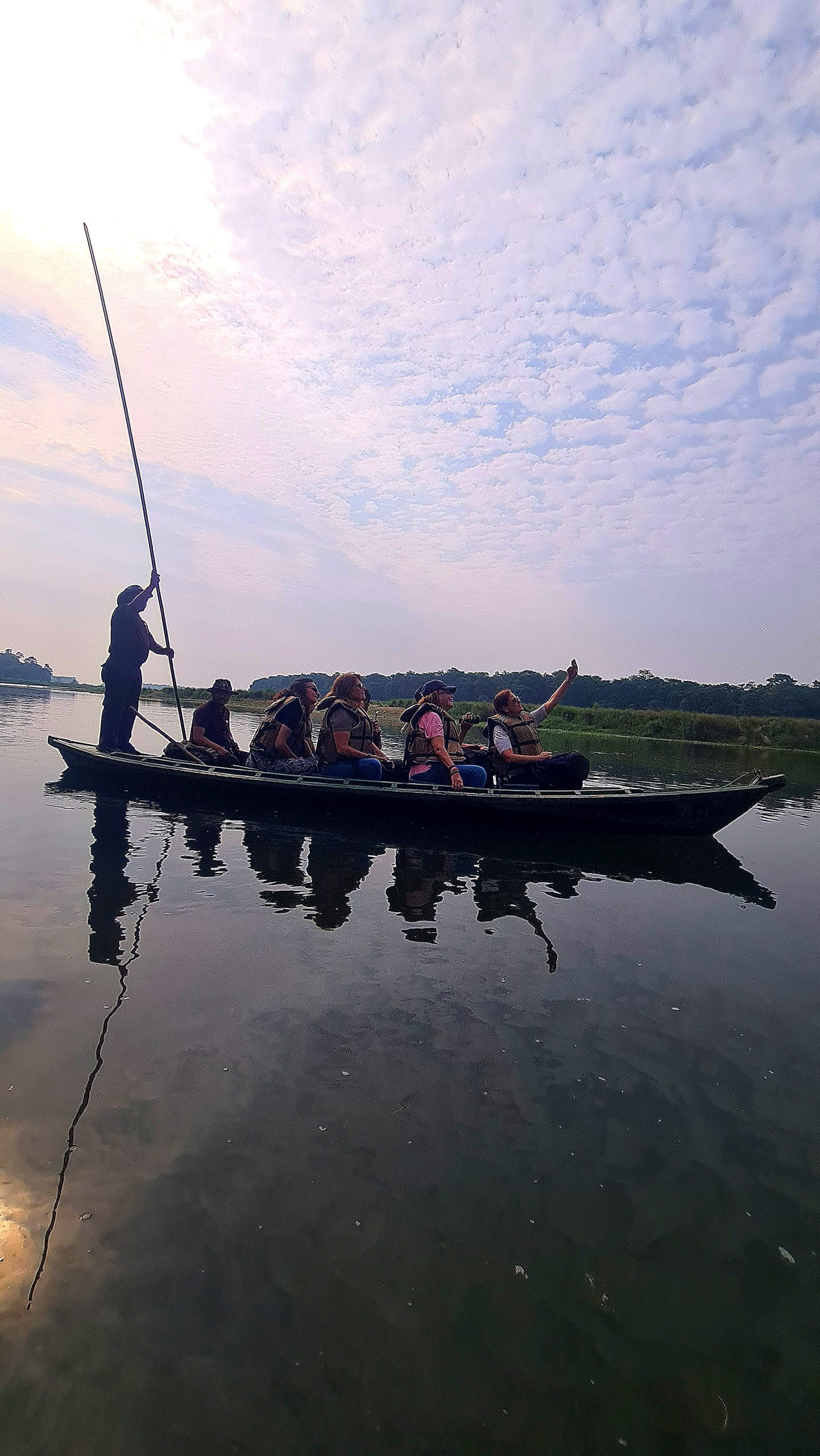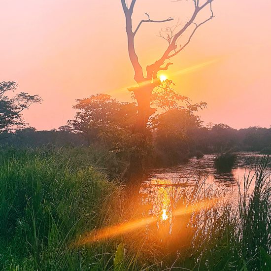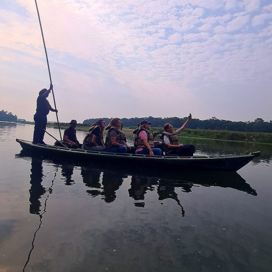 Depois do pequeno-almoço no hotel, seguiremos para um safari de observação da vida selvagem. O parque nacional de Chitwan abrange 932 km² com abundante fauna e grande variedade de flora, diferentes espécies de aves, mamíferos e répteis. As atividades nos safaris incluem caminhadas na selva, observação de aves, safari de elefante, canoagem e safari de jipe para observar a vida selvagem no interior da floresta. Durante estes safaris, poderemos avistar o rinoceronte asiático de um chifre, elefantes, macacos rhesus, langures cinzentos, veados, crocodilos, aves de cores vibrantes, pitões e, com alguma sorte, o majestoso Tigre Real de Bengala ou leopardos. Durante a tarde, safari de jipe para continuarmos a observar vida selvagem. Regresso ao hotel. Jantar e alojamento