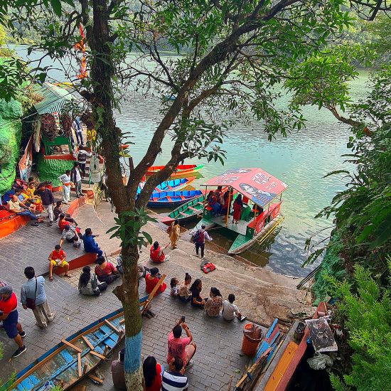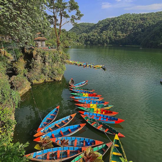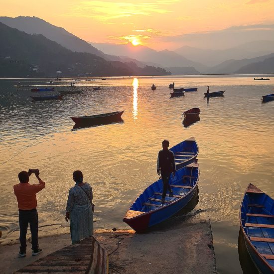 Saída de madrugada para uma visita a Sarangkot para apreciar a espetacular paisagem do nascer do sol sobre os picos das montanhas. A uma altitude de pouco menos de 1.600 metros, Sarangkot encontra-se numa crista elevada a noroeste de Pokhara e oferece vistas panorâmicas das montanhas, desde Dhaulagiri, passando por Annapurna até Manalsu, bem como a sul sobre o vale de Pokhara. Nota importante: Para observar o majestoso nascer do sol, teremos de sair entre as 04:30 e 05:30, dependendo do horário do nascer do sol. A visibilidade do nascer do sol depende das condições meteorológicas. Regresso ao hotel para o pequeno-almoço. Mais tarde, seguimos para um tour de visitas turísticas pela cidade de Pokhara, incluindo Devi’s Fall, Old Bazaar e o Templo Bindhyabasini. Faremos também uma excursão à Aldeia Tibetana. Do outro lado do vale de Pokhara encontram-se quatro aldeias de refugiados tibetanos: Tashi Palkheil, Paljorling, Tashi Ling e Jampaling. É obrigatório visitar pelo menos uma destas aldeias para conhecer o estilo de vida, cultura e o quotidiano tibetanos. Após o almoço, seguimos para um passeio de barco, de aproximadamente uma hora, no Lago Phewa, a principal atração de Pokhara. O Lago Phewa é o segundo maior lago do Reino do Himalaia e o mais encantador dos três lagos que embelezam Pokhara. Aqui, pode-se navegar ou remar num barco alugado ou visitar o templo na ilha no meio do lago. Durante o passeio, também explorará o Old Bazaar. Continuamos o passeio à volta do Lago Phewa e visitaremos o Templo Barahi (Barahi Mandir), onde partidiparemos na cerimónia Aarti ao entardecer. Este é um evento espiritual e cultural significativo que atrai tanto locais como turistas, oferecendo uma visão das tradições religiosas e culturais do Nepal. A cerimónia caracteriza-se por um ambiente pacífico e espiritual, com o reflexo das lâmpadas no lago, os cânticos e a brisa fresca do final da tarde, criando uma experiência serena e inspiradora. Regresso ao hotel. Jantar e alojamento.